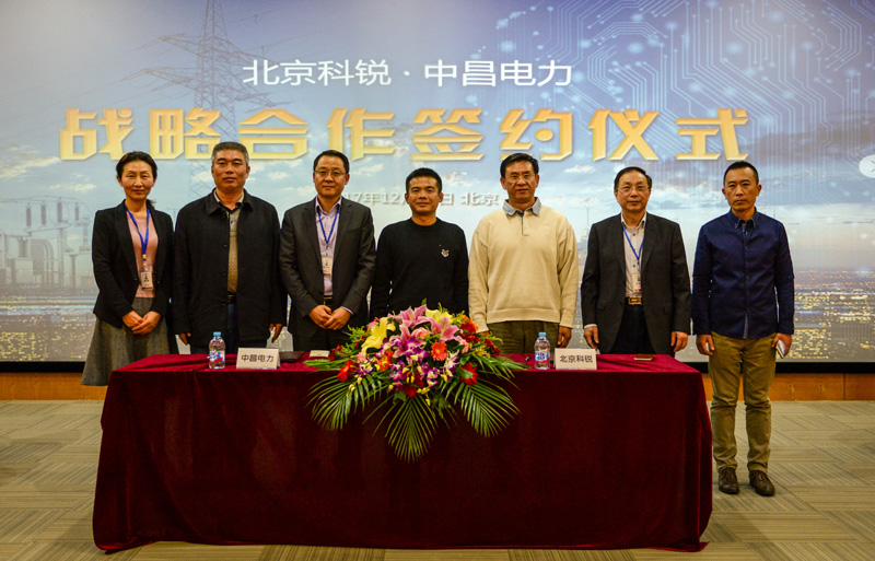 北京科銳董事長張新育、副總經(jīng)理李俊杰、技術(shù)總監(jiān)袁欽成、行政總監(jiān)兼董事長助理?xiàng)钶?,中昌電力董事長付敏、總經(jīng)理徐偉國出席了簽約活動(dòng)。