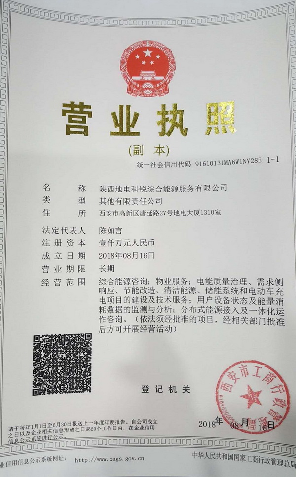 8月16日,北京科銳旗下的科銳能源與陜西地電旗下的節(jié)能公司合資設(shè)立的陜西地電科銳綜合能源服務(wù)有限公司(簡稱“地電科銳”)取得工商營業(yè)執(zhí)照,注冊資金1千萬元。