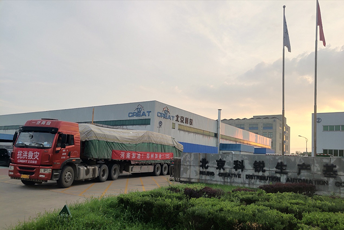 災情就是命令!搶險就是責任!智能電氣事業(yè)部和變壓器事業(yè)部迅速安排挑選捐贈產(chǎn)品并逐一進行檢測。公司黨支部積極落實捐贈過程中的各項工作。在各部門配合下,第一批捐贈物資20臺變壓器于7月23日下午2:10分完成裝車,4輛車滿載著北京科銳人對河南人民的愛,駛向新鄉(xiāng)縣供電公司。第二批捐贈物資15臺(套)開關設備于7月23日下午7:05分從北京懷柔生產(chǎn)基地出發(fā),滿載著北京科銳人對河南電網(wǎng)的愛,駛向新密市供電公司。