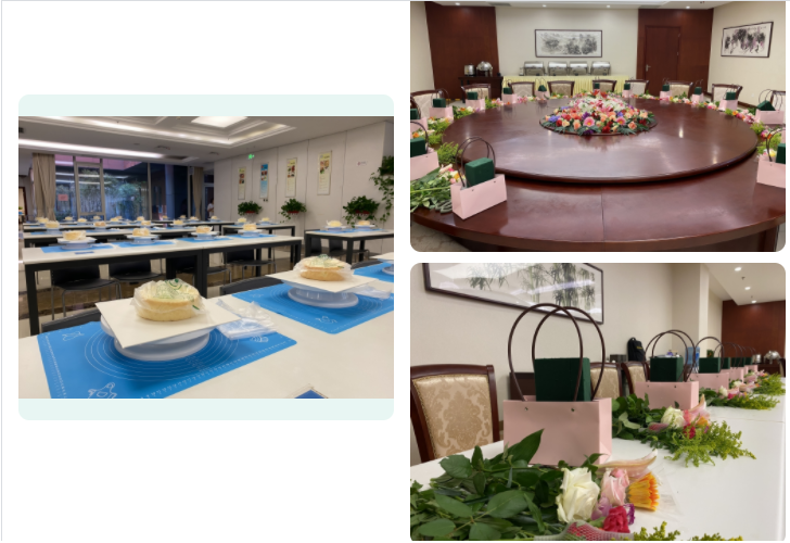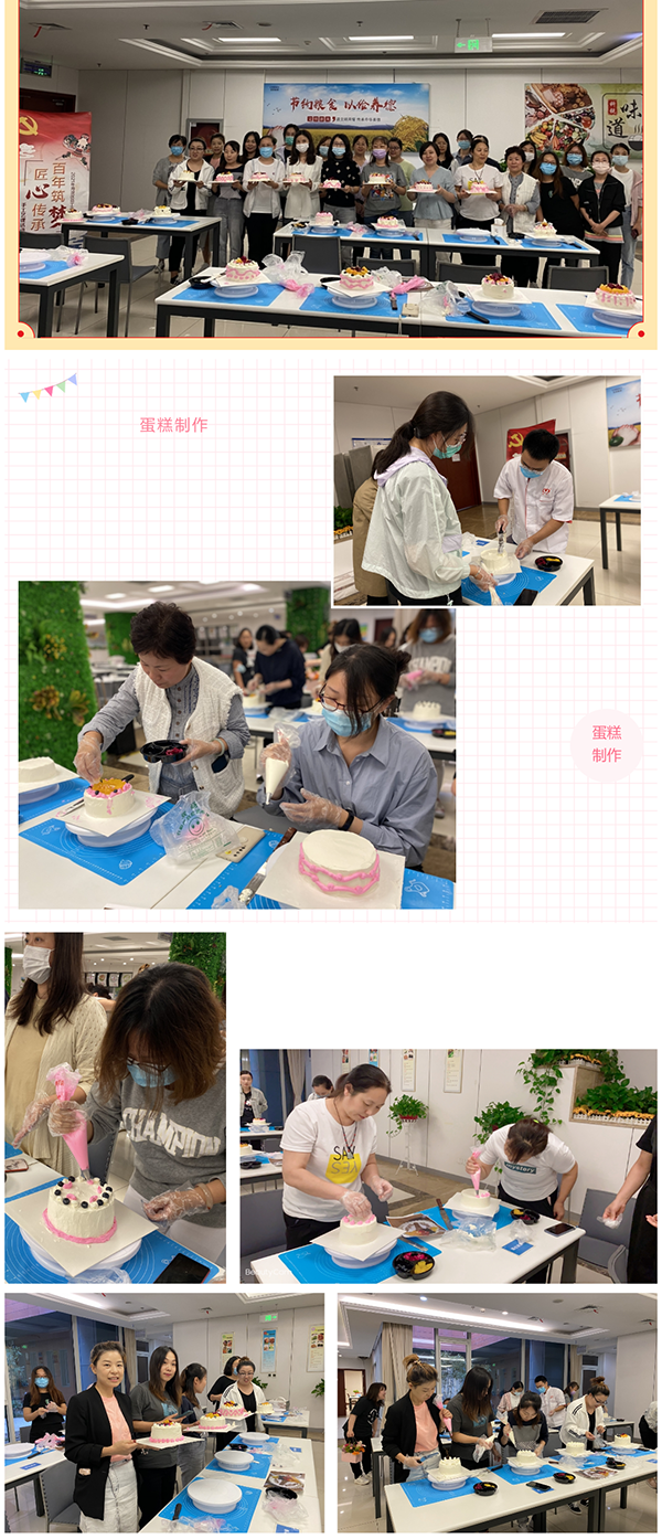 蛋糕制作,在經(jīng)驗豐富烘焙老師的帶領(lǐng)下,分發(fā)食材,參與者在老師的教導(dǎo)下學(xué)習(xí)制作和烘焙。在活動中不時出現(xiàn)員工提問和老師互動的場景,如詳細(xì)的詢問老師每一個步驟應(yīng)該怎么操作,活動現(xiàn)場氛圍溫馨、熱鬧,在烘焙老師的指導(dǎo)下,大家一起動手抹奶油、裱花、添加水果……制作出了一個個精美的蛋糕。